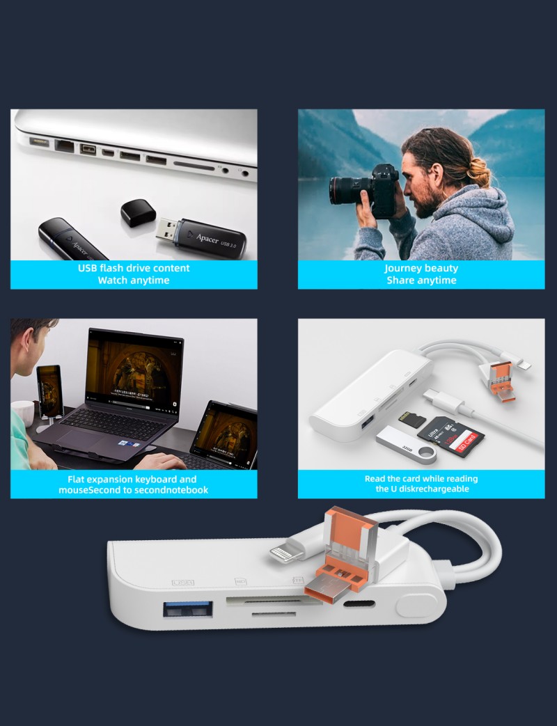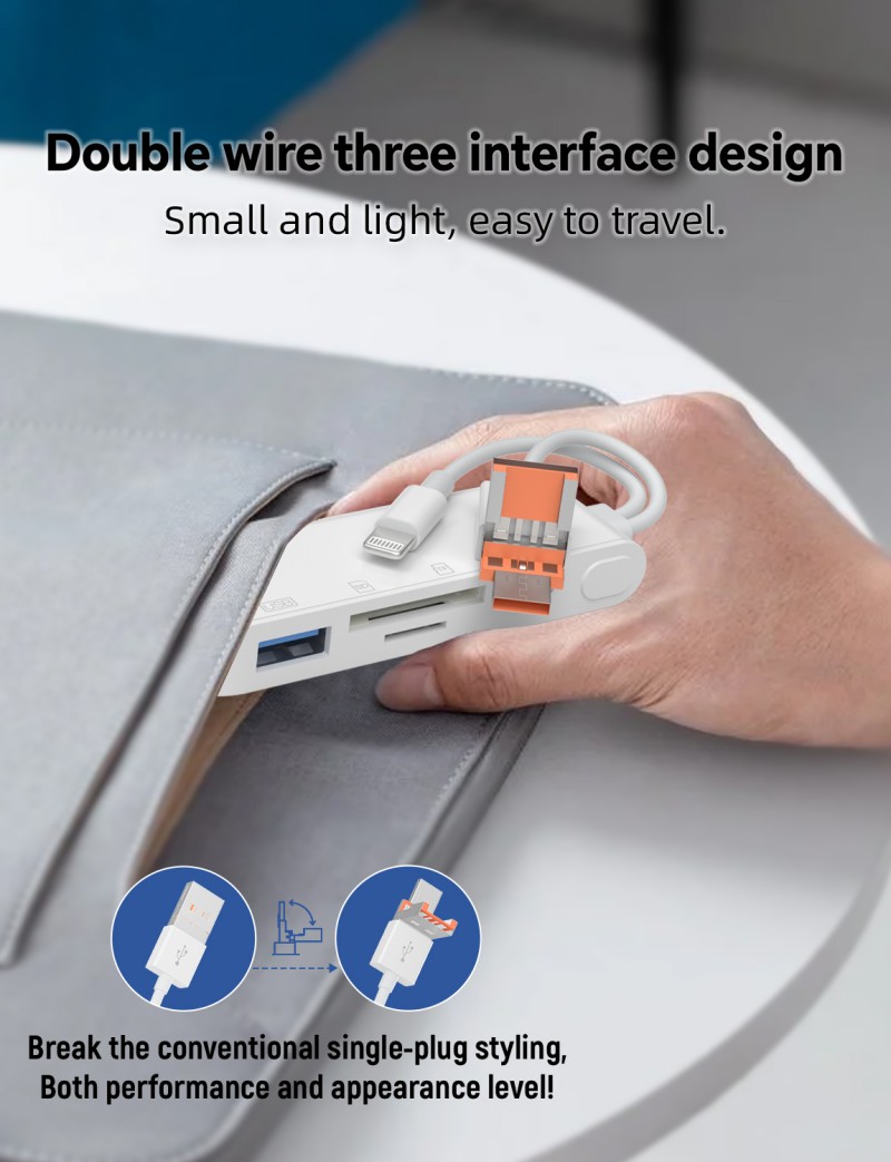 With its dual-line technology, the reader supports high-speed data transfer without compromising on reliability. This feature is particularly beneficial for users who need to work with large volumes of data, such as 4K video files or high-resolution images. The Dual-Line Three-Port Card Reader ensures quick access to your files, reducing wait times and enhancing overall efficiency.
