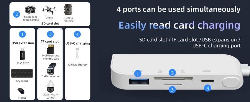 The Dual-Line Three-Port Card Reader is designed with ease of use in mind. It features a plug-and-play design that requires no additional drivers or software installation. Simply plug the reader into your device’s USB port, insert your memory card, and you’re ready to transfer files in a matter of seconds. This user-friendly design ensures that even those who are not technically savvy can easily operate the reader.