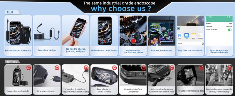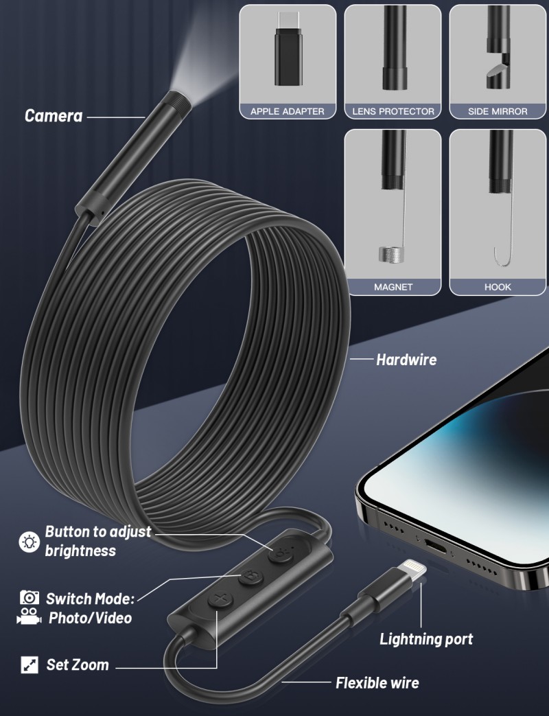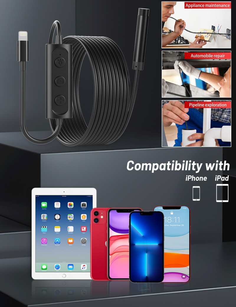 Whether Apple users are repairing outdoor equipment, troubleshooting on-site, or inspecting details in precision industrial environments, this Lightning-connected endoscope delivers high-definition vision, Apple-specific compatibility, and easy operation, ensuring every inspection is precise, efficient, and effortless.
