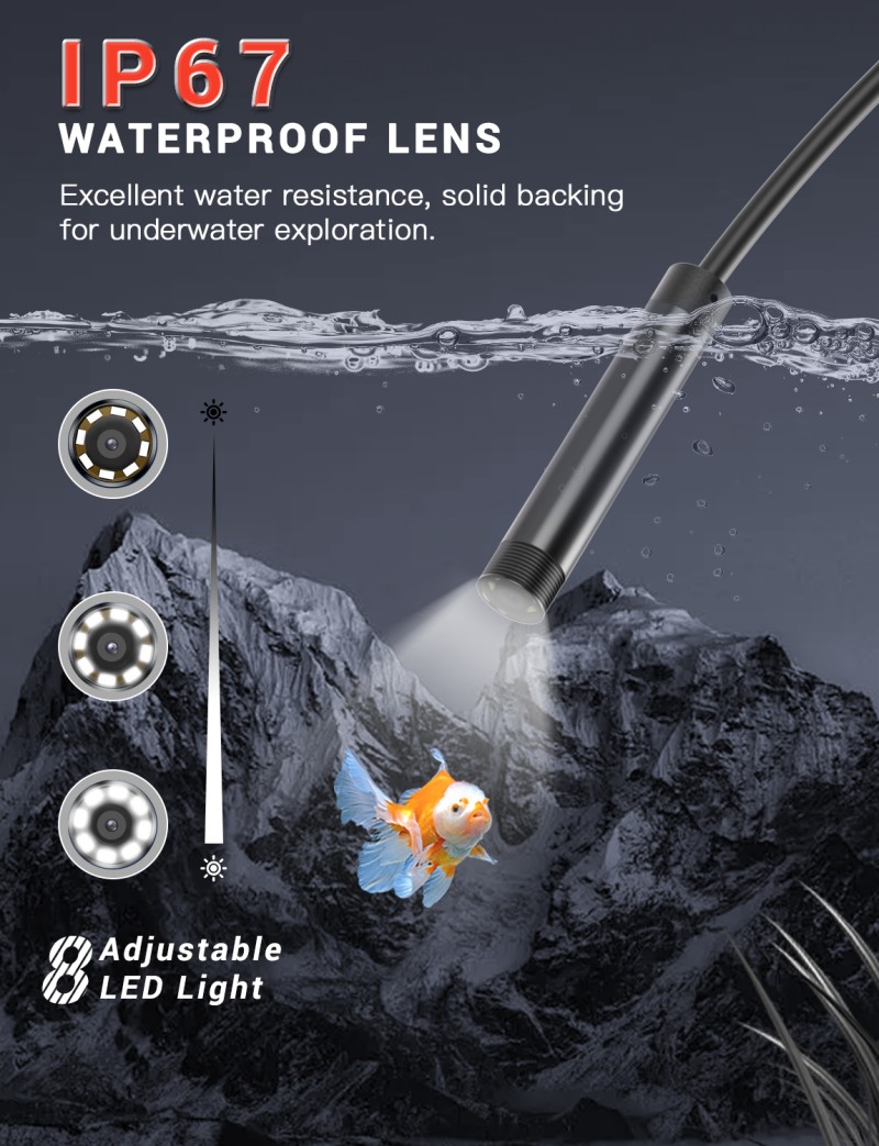 Exclusively compatible with the Apple ecosystem, ensuring a smooth and stable experience: Deeply optimized for iOS, the system provides instant recognition upon connection, without lag or lag. Inspection images can be annotated and shared directly on Apple devices, and with iCloud sync, inspection reports are synchronized to your computer in real time, meeting team collaboration needs and eliminating the need for Apple users to compromise on compatibility. Extreme durability, adaptable to extreme working conditions: The 8.0mm slim probe easily enters spaces as narrow as 10mm in diameter. IP67-rated waterproofing ensures stable operation underwater and in oily environments. From automotive engine cavities to air conditioning ducts, from mechanical bearings to the interior of walls, it can provide in-depth inspections, becoming an "industrial-grade third eye" exclusively for Apple users.