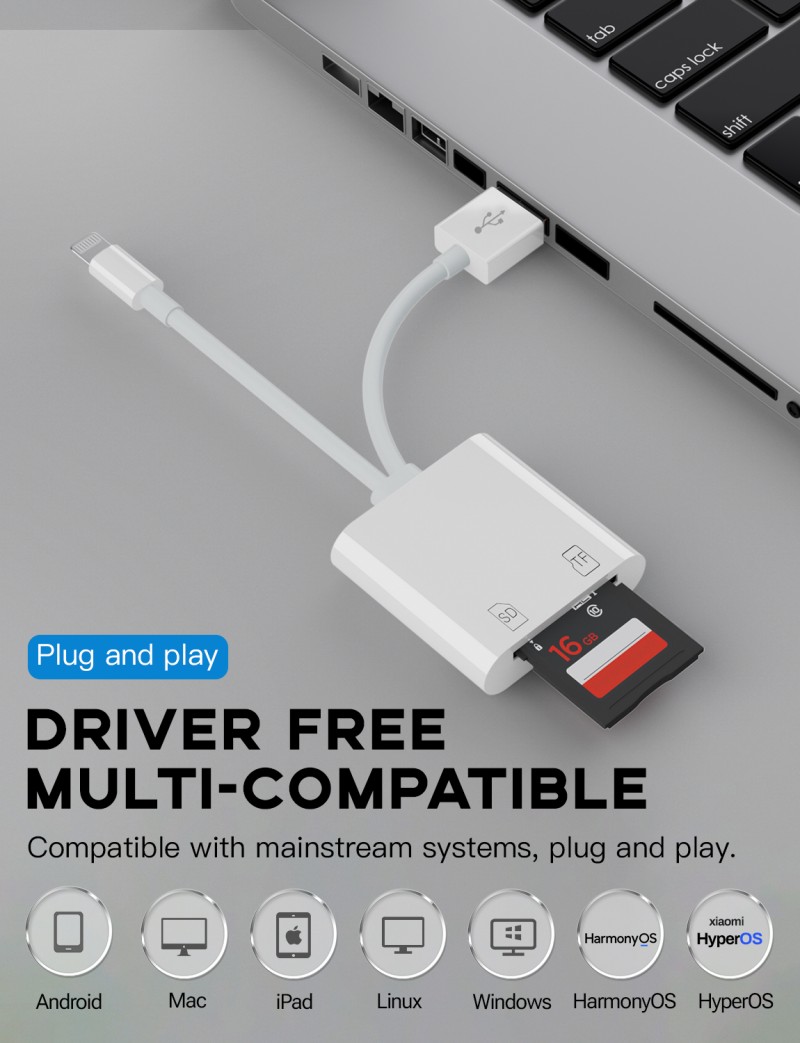 ZOIOT's USB/Lightning/Type-C 3-in-1 Card Reader integrates USB, Lightning, and Type-C interfaces, supports simultaneous dual SD and TF card reading, and is plug-and-play, requiring no drivers. It easily connects data between multiple devices, including phones, tablets, and computers. Whether it's high-definition footage from a camera's memory card or everyday files from a phone's memory card, it allows for fast transfer and efficient management, making it a perfect portable data assistant for photography enthusiasts and office professionals.