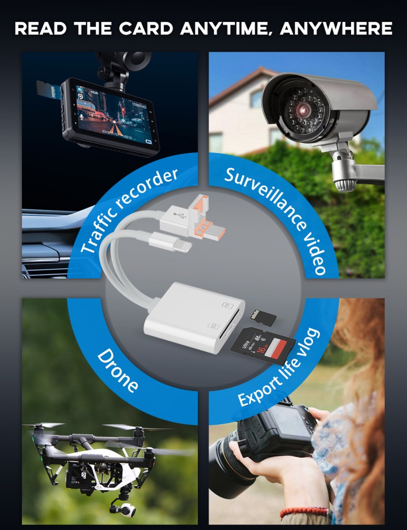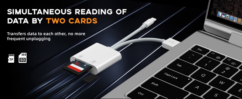Simultaneous Dual-Card Reading without Waiting: The SD card slot accommodates memory cards from DSLR cameras, drones, and camcorders, while the TF card slot is compatible with memory cards from mobile phones, dashcams, and surveillance equipment. Two cards can be inserted and read simultaneously, eliminating the need for repeated insertion and removal. After capturing the perfect scene, 4K video from the camera's SD card and on-site footage from the phone's TF card can be exported simultaneously. While working, data from different memory cards can be directly compared and transferred, doubling efficiency. Plug-and-play: No driver installation required; devices instantly recognize the card upon insertion. Compatible with iOS, Android, Windows, macOS, and more. Easy to use for both adults and children, plug in and transfer data instantly, eliminating complicated operations.